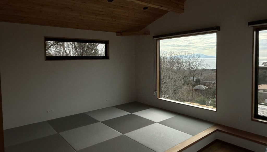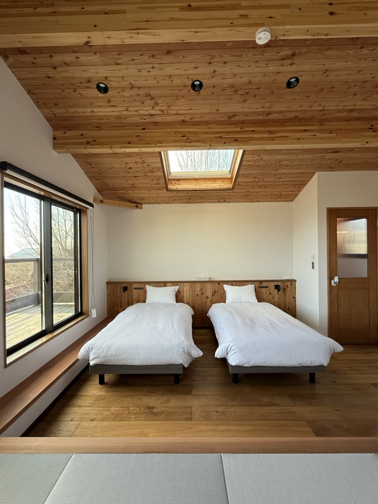 – シングルベッド × 2台 – 畳の小上がりエリア(敷布団3組)